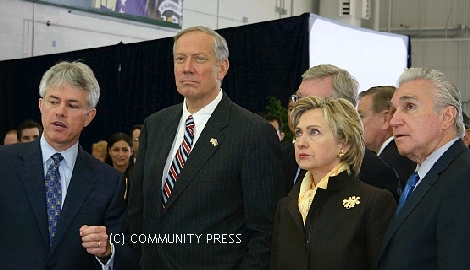Stephen Ramsey of Lockheed Martin (left) points out features of the Presidential Helicopter Integration Facility to Governor George Pataki, Senator Hillary Clinton, and Congressman Maurice Hinchey. More Photos The Community Press a free newspaper, published monthly serving the Tioga County, New York, area Copyright 2006 Brown Enterprise and Marketing |