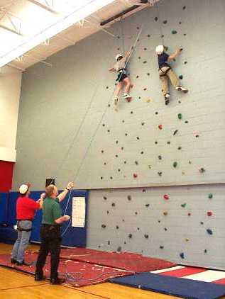 in the cafeteria. A wall climbing demonstrationwas held in the small gym.