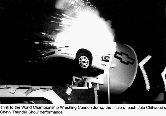During its appearance in Owego, Joie Chitwood's Chevy Thunder Show will work closely with Trabucco Chevrolet of Owego. Trabucco provides support in the form of advertising and the Chitwoods also make use of the Trabucco's state-of-the-art service facilities. The Chitwood's routines are performed with Chevrolet models available at Trabucco Chevrolet.