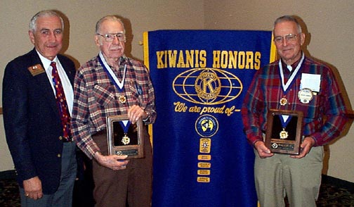 Jerry Christiano, past international president of Kiwanis, presented Russell Rawley and Gerald Arbes Sr. with the George F. Hixson Fellowship award in recognition of their significant contributions to the Kiwanis. A contribution of $1,000 has been made in their names to the Kiwanis International Foundation for Kiwanis International's Worldwide Service Project.