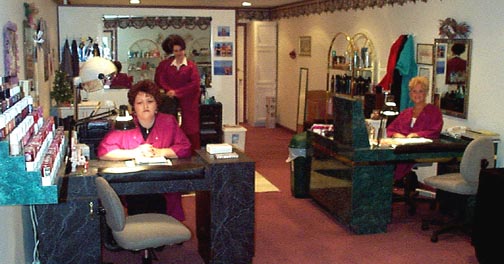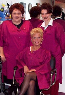 services to include hair styling. Pictured at left, Mary Abell (center)