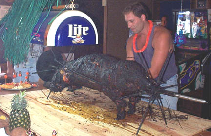 staff was dressed in Hawaiian costumes and patrons were greeted at the