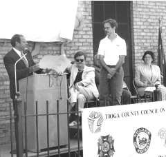 Following the unveiling ceremony, Senator Libous attended a brief reception hosted by the Tioga County Council of the Arts and Tioga County Chamber of Commerce at Lefty's Restaurant, which is also located on Broad Street.