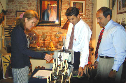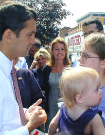 After greeting the crowd at courthouse square, Rick Lazio tours Owego's Front Street and stops at Riverow shops. |