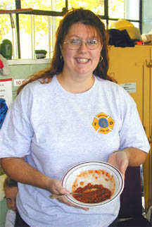 Debra Walker was the winner in the amateur division of the Apalachin Fire Department's Annual Firehouse Chili Challenge which was held October 14 in conjunction with an Open House. Pam Babucca of Chat-A-Wyle was the winner in the professional division. Both winners received a savings bond presented by the fire department. |