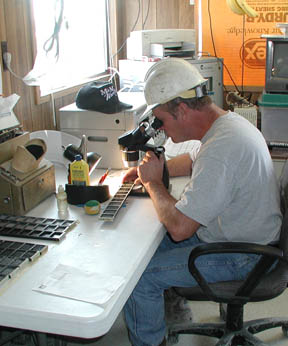 Geologists and "Mud-loggers" are carefully monitoring every foot of rock samples that come out of the well as the drilling continues. The rocks or "mud" are identified, analyzed, and the data entered into a computer where it adds to existing information bank of knowledge of the world beneath us. |