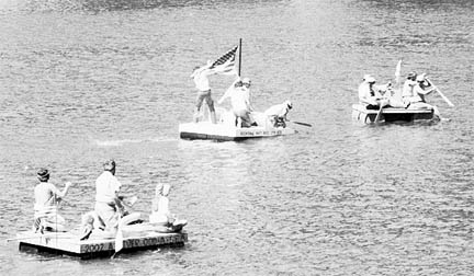 Race takes place with 230 rafts being launched at Hickories Park. (See