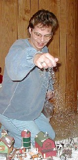 if you like, it's OK" Diane sets up her village around Thanksgiving - it takes her about three days - and she leaves it up until Easter. With so much time and money invested in her village, it's a shame to leave it up for only a few weeks. Her Christmas tree will eventually sit in the center of the village. The tree stand is already there. Diane covered it with casting material and white caulking - now it's a hill enjoyed by sledding kids and skiers! The village sits on her son's old train platform, which she covers with white cotton batting and the occasional flurry of store-bought powder snow. One of her tricks is to use sandpaper as an inexpensive way to create the illusion of dirt roads and pastures. All of the buildings have light bulbs inside them and Diane lights every one, which gives the village a warm and wonderful glow. When things get rough or stressful, Diane lights up her village, turns on some music, and sits down to relax and enjoy her enchanting Christmas village. The Community Press |