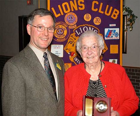 Apalachin Lions Club President David Rupright presents Henrietta Whitney