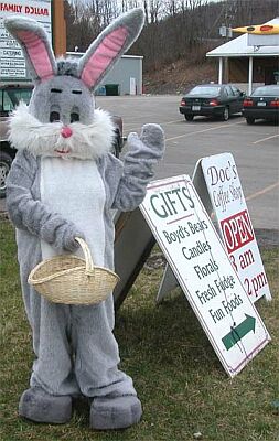 The "Easter Bunny" greets customers at Cedar Court & Doc's Coffee located in Sweeney's Plaza on Route 434 in Apalachin.