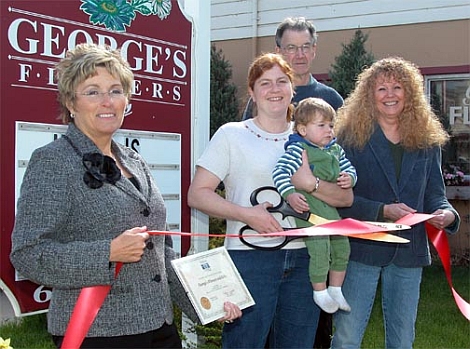 Ribbon Cuttings Top Photo: A ribbon cutting ceremony was held at Van Horn Jewelers on Lake Street in Owego on May 19 to announce the addition of Michael Husted (center, with scissors) to its staff. Husted is a Master Bench Jeweler, designer, and craftsman. Bottom Photo: A ribbon cutting ceremony was held May 12 at George's Flowers on Main Street in Newark Valley.