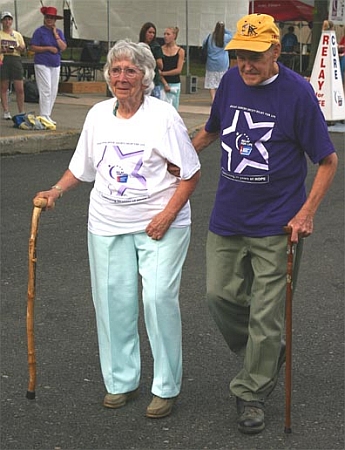 Relay for Life: Virginia and Tom Milligan of Owego participate in the "Survivor's Lap" at the opening ceremonies for the Relay for Life held at the Owego Free Academy last month. This year the Relay for Life raised more than $120,000 for the fight against cancer, exceeding their goal of $98,000.