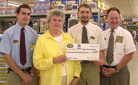 for $4,124 to Faith Kucher, outgoing President of Tioga County Habitat