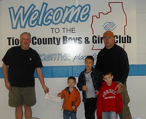 Bob Knox of the Tioga Boys and Girls Club is presented a check from