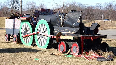 the train as it appeared on Wednesday, March 1. The engine collapsed in
