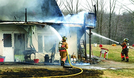 Friday, March 31, all fire departments in Tioga County were busy fighting fires throughout the county and assisting fire departments in neighboring counties. Pictured above: The Apalachin Fire Department was called to a house fire at 1356 Gaylord Road in Apalachin. The house was destroyed. The occupants, who were home at the time, escaped without injury. The fire department of Little Meadows, Campville, Vestal, and Owego assisted. Pictured below: ON March 30, the Owego Southside Fire Department