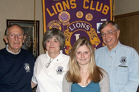 The Apalachin Lions Club, in conjunction with the parent organization (Lions Clubs International), is sponsoring a sophomore student from Owego Free Academy and Vestal Senior High School to participate in the regional Hugh O'Brian Youth Leadership (HOBY) workshop. It will be held in the spring of 2009. The Apalachin Lions believe that HOBY will benefit the participant as well as his/her peers, the school, and the community at large. Students who would like more information on this workshop should ask the following members of their school's guidance department: Kim Hakne at Owego Free Academy, and Judith St. John at Vestal Senior High School. Pictured above: At the Apalachin Lions dinner on October 8, (from left to right) Lion Nick Rossi; Lion Second Vice-President Janet DeLap; Jillian Strauss (Owego Free Academy), participant from the 2008 HOBY workshop; and First Vice-President Lion John Sobotka.