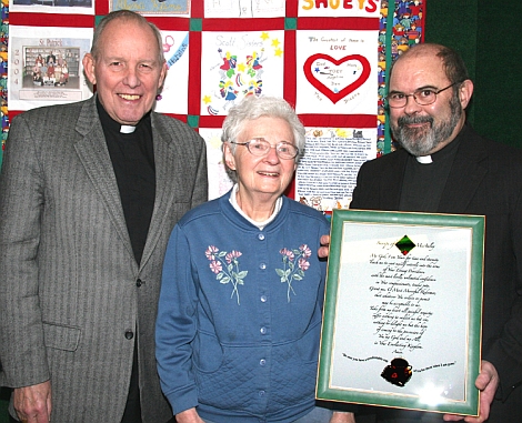 Bishop Clark of the Rochester Diocese, Katherine Haeling, and Father William Moorby of St. Patrick Church, Owego. Katherine Haeling of Marshland Road, Apalachin, on January 30
