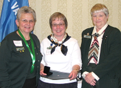 Girl Scout Appreciation Pin honorees, Diane Zelaska (left) and Cecilia Skovira. Carol Barnes of Tioga Center was given the Girl Scouts' highest honor for adults, the Thanks Badge, last month at the awards luncheon of the Girl Scouts – Seven Lakes Council in Watkins Glen. The Thanks Badge is given to adults whose service is so extraordinary, no other award is appropriate. Alicia Griggs of Owego was given the Girl Scout Honor Pin. The Honor Pin is given to Girl Scout adults demonstrating outstanding service to two more geographic areas. Sherry O'Connell of Candor, Cecilia Skovira of Owego and Diane Zelaska of Nichols all received the Girl Scout Appreciation Pin. The Appreciation Pin honors outstanding service to Girl Scouting in one or more geographic areas. Nominations are made to the council's volunteer Adult Awards Task Group that makes the final award selections.