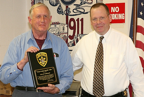 Below: Ed VanDemark (left), recently retired as head of the Stop DWI Program received a recognition for his service from Undersheriff Mike Jackson (right). ![]() Below: Communication Sergent Steve DuVarney, Dispatcher Judy Hitchcock
